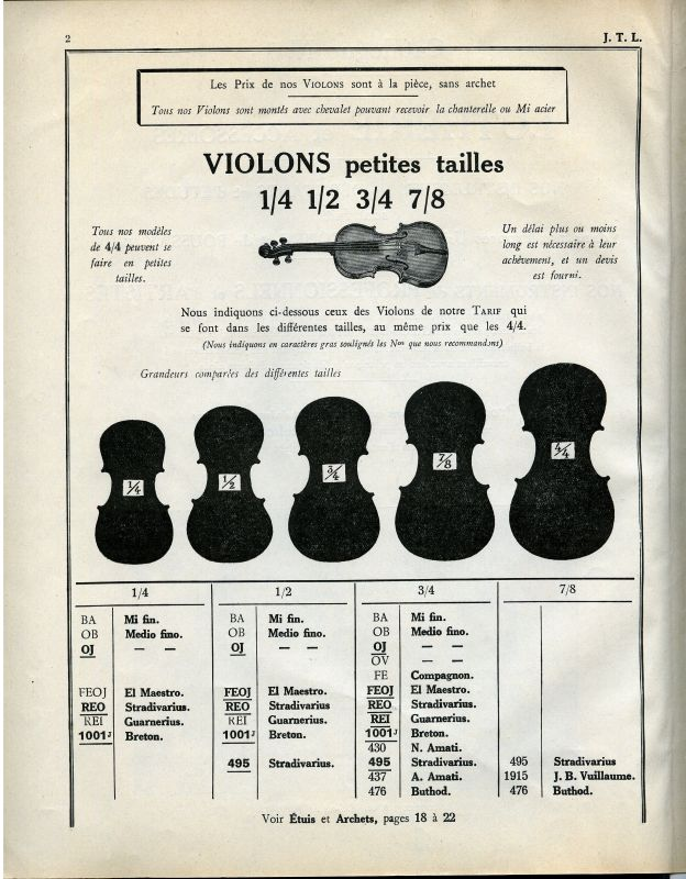 The firm had different lines of instruments, including student instruments (eg the Médio-Fino and Compagnon ranges) and copies of makers ranging from Stainer and Klotz to Stradivari, as well as instruments named after old violin making-families from Mirecourt and other French makers.