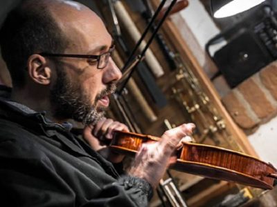 イタリアのLecco(レッコ)付近の小さな町で育ち、学生時代に木材加工やカービングの楽しさをおぼえると、バイオリン製作への興味を次第に強くさせていきます。